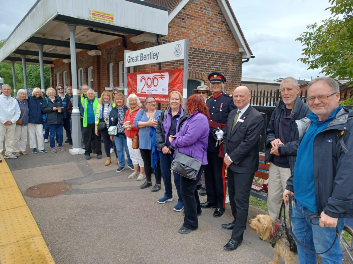 The station adopters at Great Bentley have transformed the station into a vibrant community space through dedicated weekly volunteering. Their efforts include maintaining colourful gardens and handmade planters, installing local heritage photo displays by Jane Fisher, and creating a walking trail leaflet funded by the Community Rail Network. During Community Rail Week, the team hosted an open day with homemade cakes, tea, and a guided village walk for over 30 visiting adopters, showcasing the station’s charm and strong community spirit.